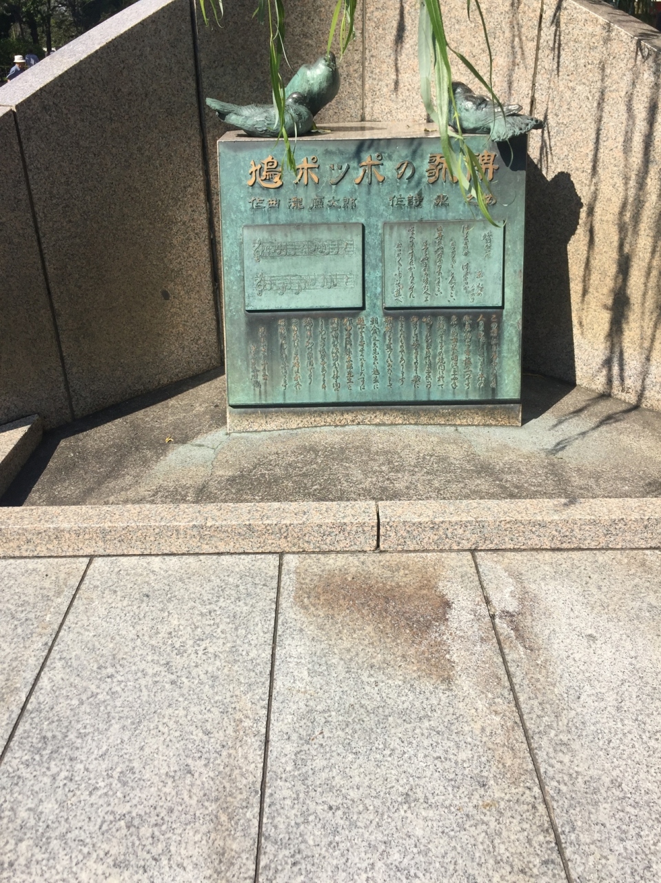 小さい頃から聞いたことある歌があったのでびっくりしました。石碑に歌詞が刻んであり調べてみると歌の中に出てくる鳩は浅草寺の鳩であると分かりました。この歌は小さい頃からだれしも親しみのある歌なんで歌が生まれた場所に来たいならこの場所です。