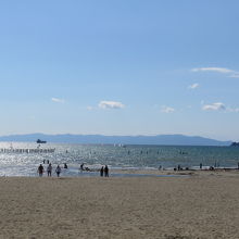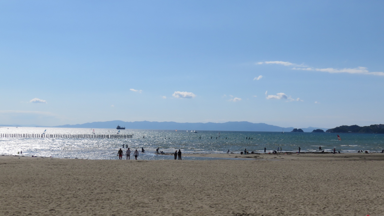 海に入るにはまだ寒いですが浅い所で子供たちが遊んでいました。