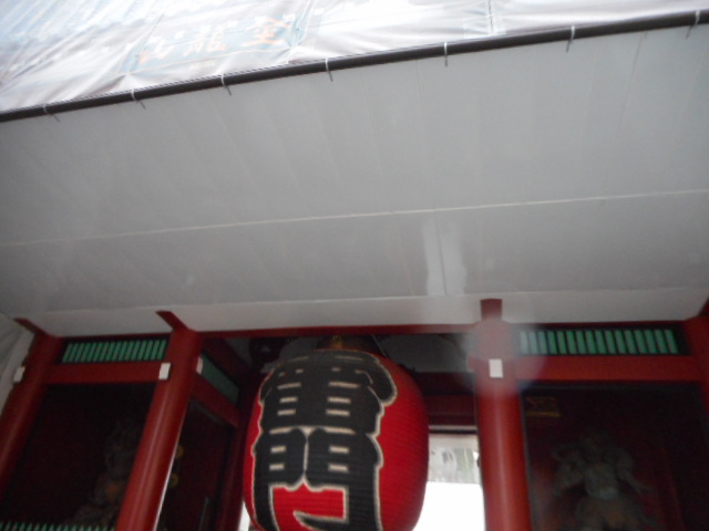 浅草といえばここ、雷門ですね。大きな赤いちょうちんが目印で、観光客でごった返していました。みんなここで写真を撮りたいので、渋滞ができてしまいます。仕方ないです。雷門は現在工事中で、一部シートで隠れていましたが、ちょうちんなどは大丈夫でした。