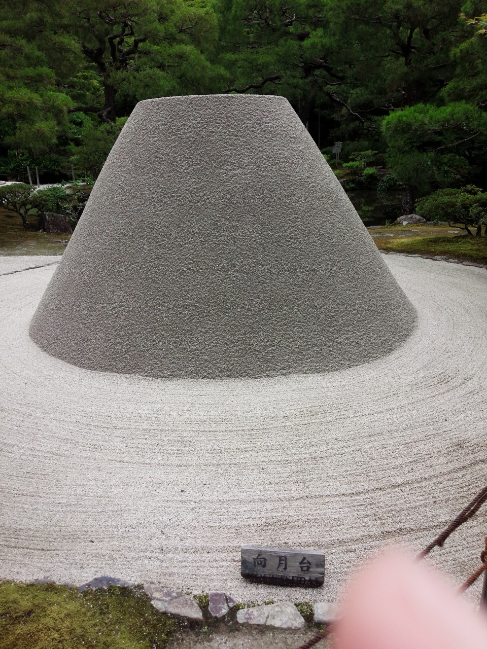銀閣寺には今回初めて訪れたので、写真でよく見る建物と池や木々といったイメージでいたのですが、受付から入ってまもなく枯山水のような白い庭が広がっているのが見えて驚きました。特に向月台という砂盛りを見たときは、そのあまりの違和感に思わず吹き出してしまい、これだから今日と巡りはやめられないといった感じでニヤニヤしてしまいました。