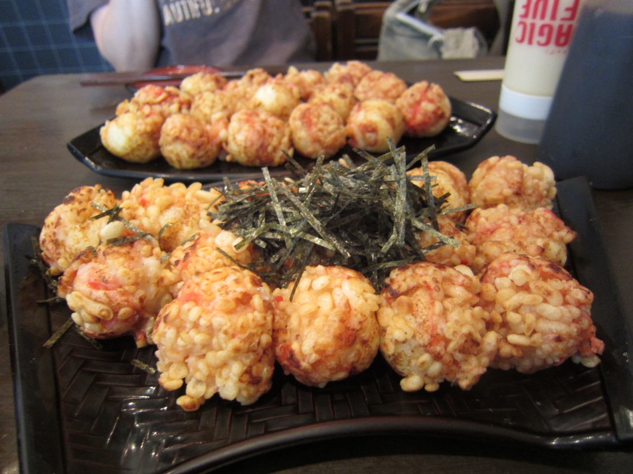 タコ焼きの周りに天かすがたっぷり、大阪では珍しくないそうですが私ははじめての味でした。