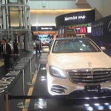 メルセデスの車が周囲に何台も置いてあって、ショールームのようになっています。