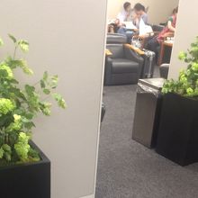 訪問時は改装工事中で臨時の場所を利用しました。狭いので常に満席のようでした。雑誌等を自由に読むことが出来、ドリンクは自動販売機のセルフで、冷蔵庫からも缶の飲み物を取ることが出来ます。座った席には電源コンセントはありませんでした。