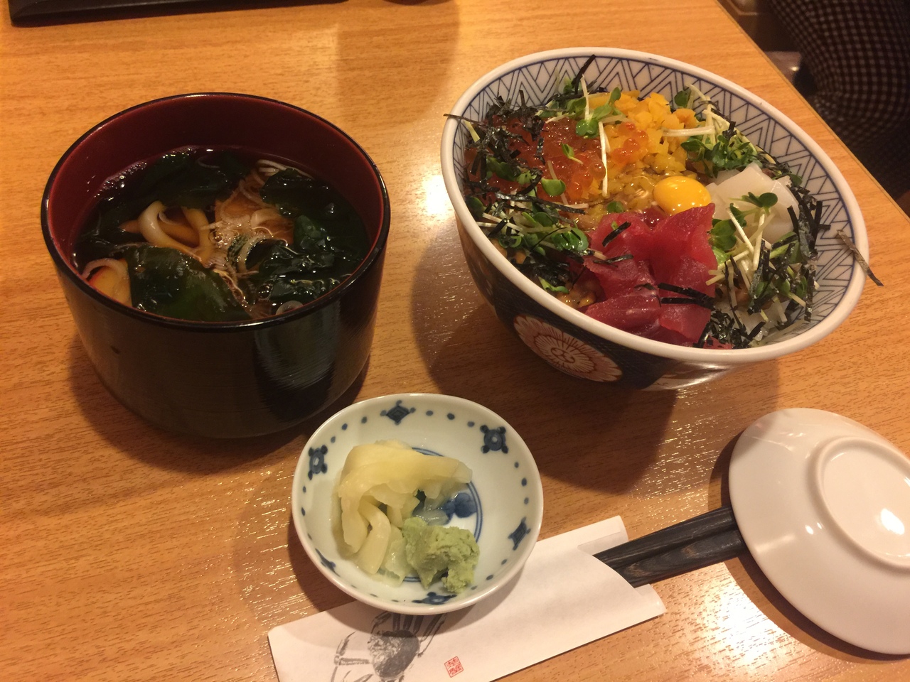 たのんだのは今週のおすすめ丼の五色納豆丼1,000円(税別)!まぐろ、いか、いくら、たくあん、卵の黄身、、、納豆!美味しいですよ(^ ^)