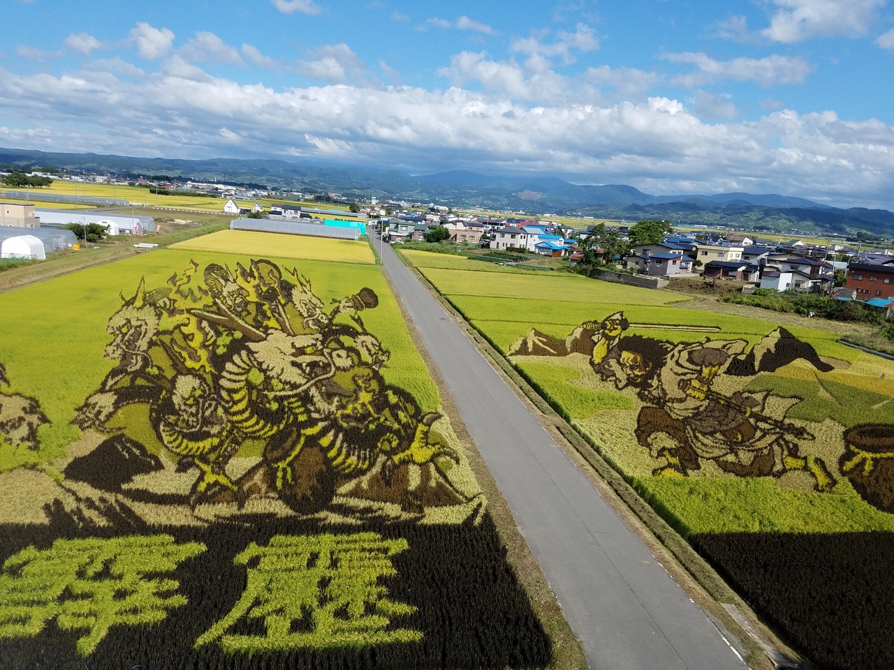 第1田んぼアート(田舎館村役場)と第2田んぼアート(道の駅いなかだて「弥生の里」)です。