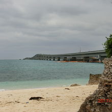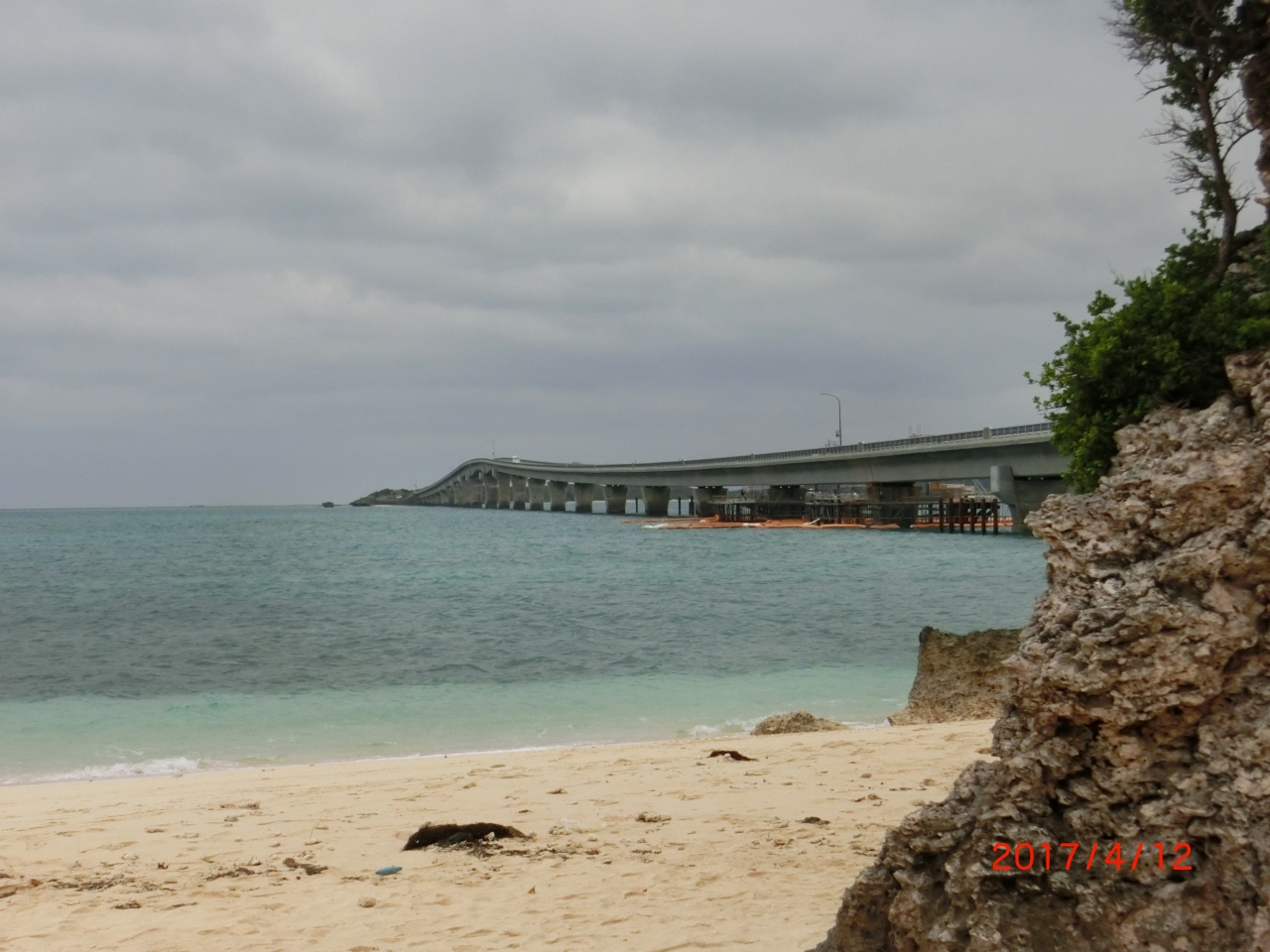 海美来の横からビーチに降りれ、ビーチからも池間大橋が見え、