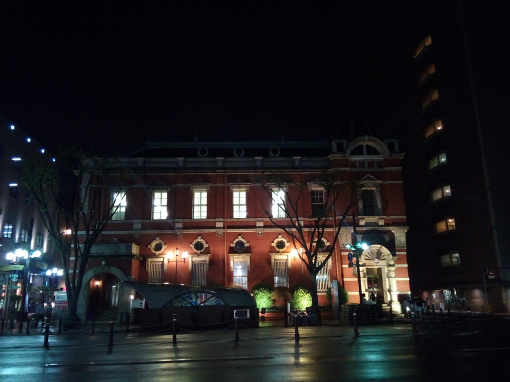 赤れんがの建物はレトロで見応えがあります。夜はライトアップされていて昼間とは違った姿が見られました。