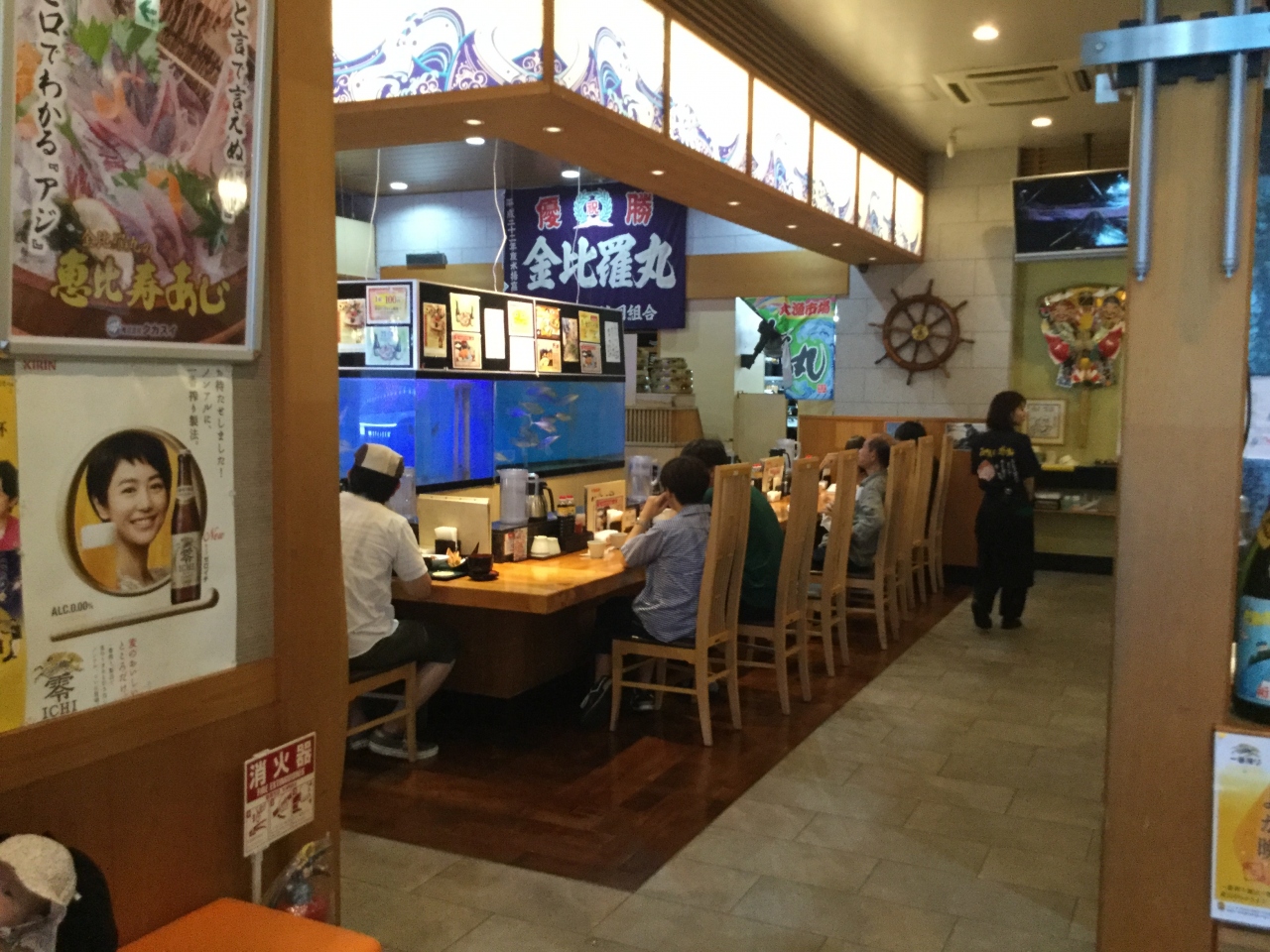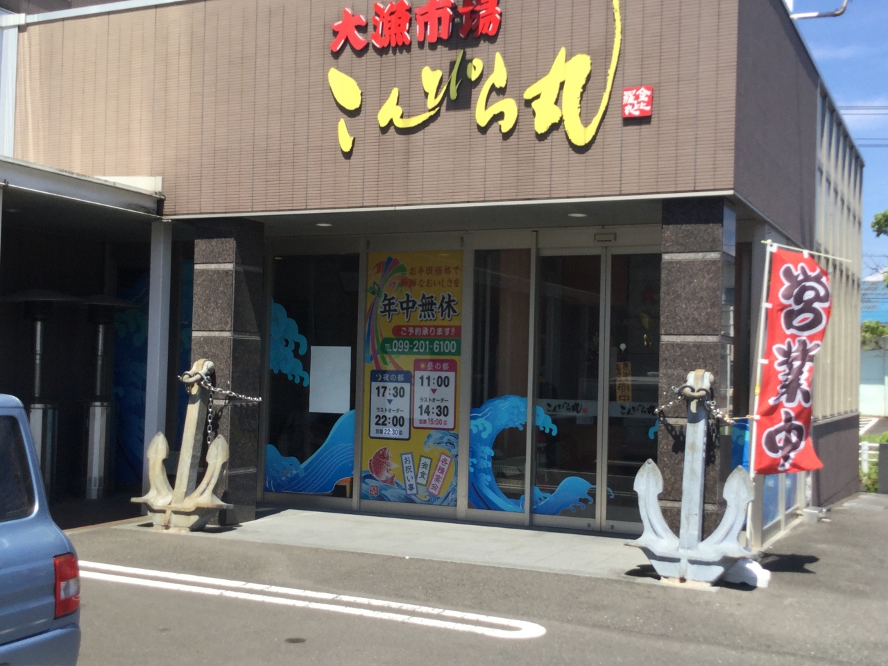 大漁市場「こんぴら丸」は(株)タカスイさんが経営しています。以前はホテルゼロシティでしたが今はチサンイン鹿児島に変わっています。鹿児島に本店と隼人店が、福岡に二店舗、熊本に一店舗あり「恵比寿サバ、アジ」が人気で品不足で養殖を使っているようです。メニューも豊富で目移りがして注文に戸惑うほどです。席もかなりありますのであまり待たなくて済むようです。お昼時間帯は混みますので余裕を持って行かれたらと思います。