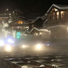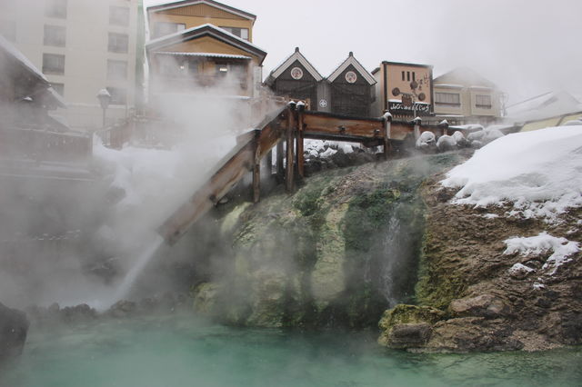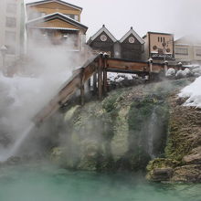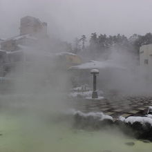 もうもうと湯煙がたち、湯が滝のように湧き出るこの風景は草津温泉のシンボルです。