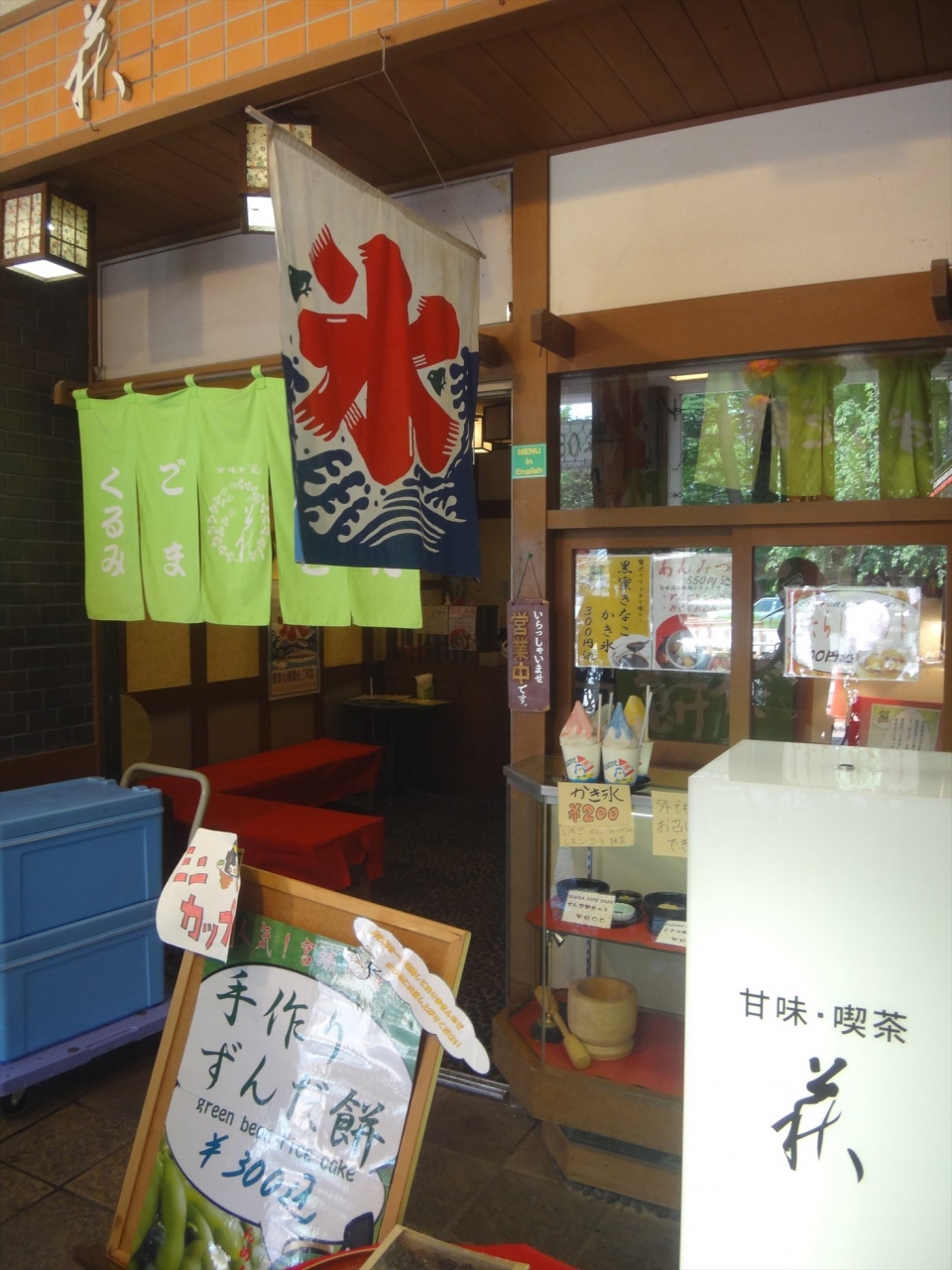 手作りのずんだ餅を300円で売っている喫茶店というか昔の茶店っぽい雰囲気のお店です。和風にした感じで、場所柄にも合っているので観光目的で利用する人にはおやつに良いと思います。ただ、観光地価格になっているので少し割高に感じるとは思います。