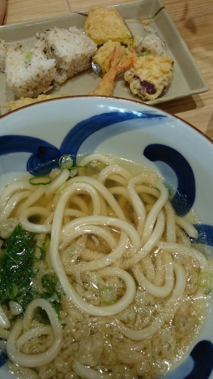 堺市西区のショッピングモール・アリオ鳳のフードコートにある店舗です。祝日のランチでだんなくんとこども二人とお邪魔しました。かけうどんの大とさつまいも天、えび天、焼きさばのおにぎりをオーダーして、子どもとシェアして食べました。味は普通においしかったです。また機会があったら利用したいと思います。