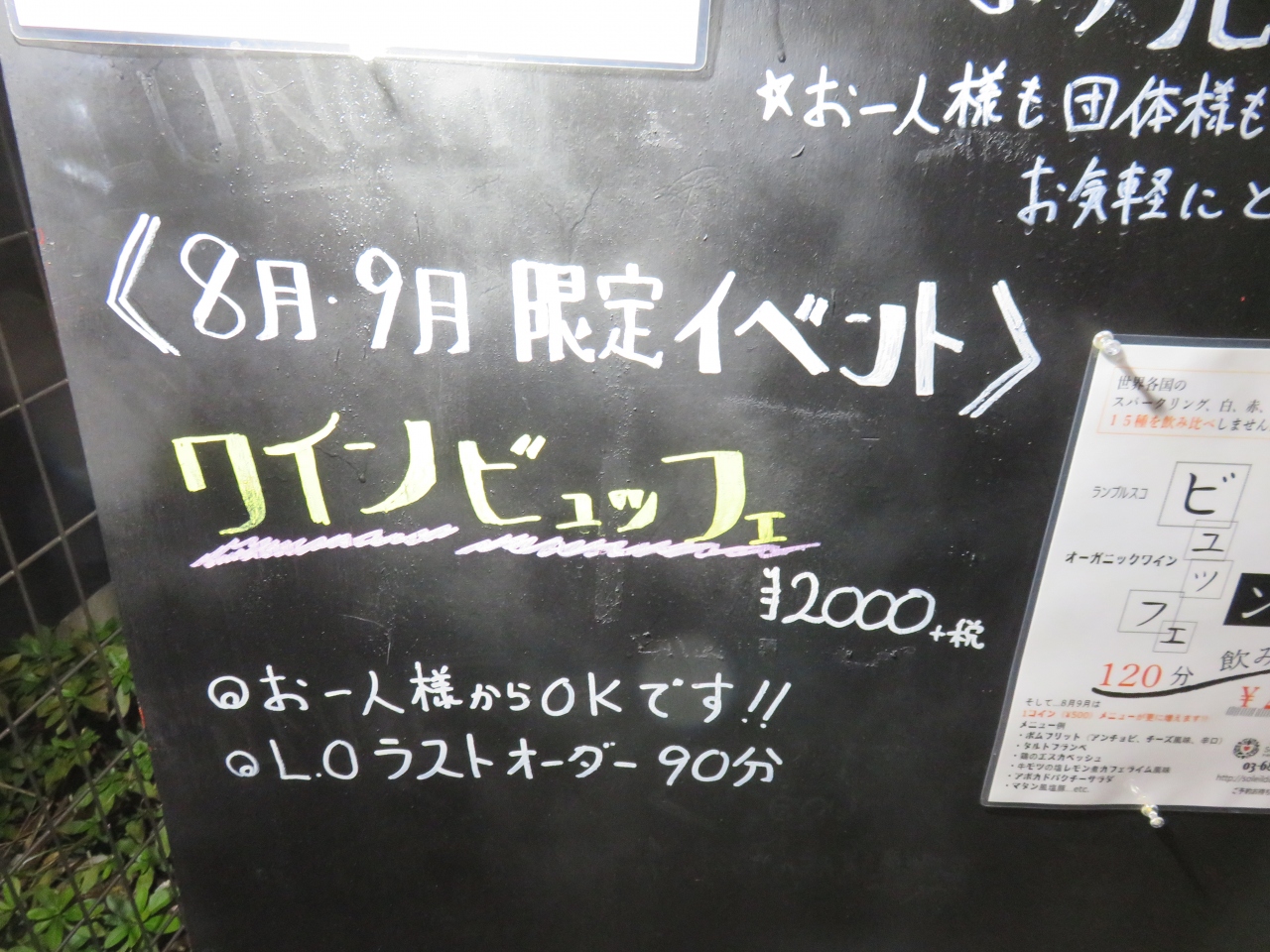 御馳走になったところなので、料金は正確にはわからないが、良心的な価格とのこと。ワインは2時間で一人2千円。10種類以上のワインから選べる。さらに追加千円で、もう一時間、滞在した。それにアラカルトで料理を頼んだ。評判がいいところのようだが、納得する。