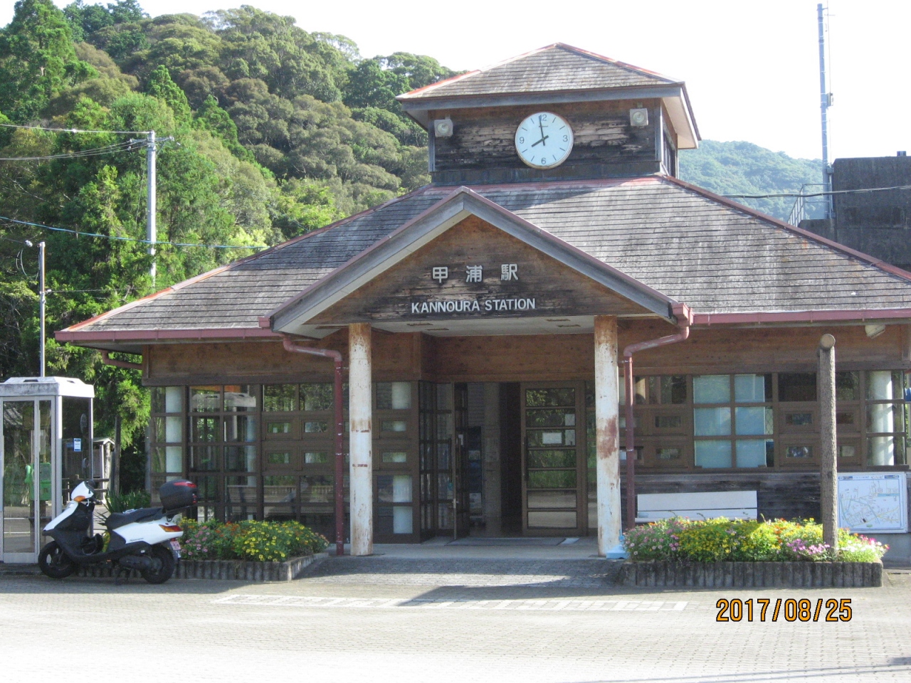 徳島駅から、四国一周するために、南方向に移動すると、この、甲浦駅で終点、行き止まりとならます。隣の、奈半利駅までは、ぐるっとバスでの移動となります。