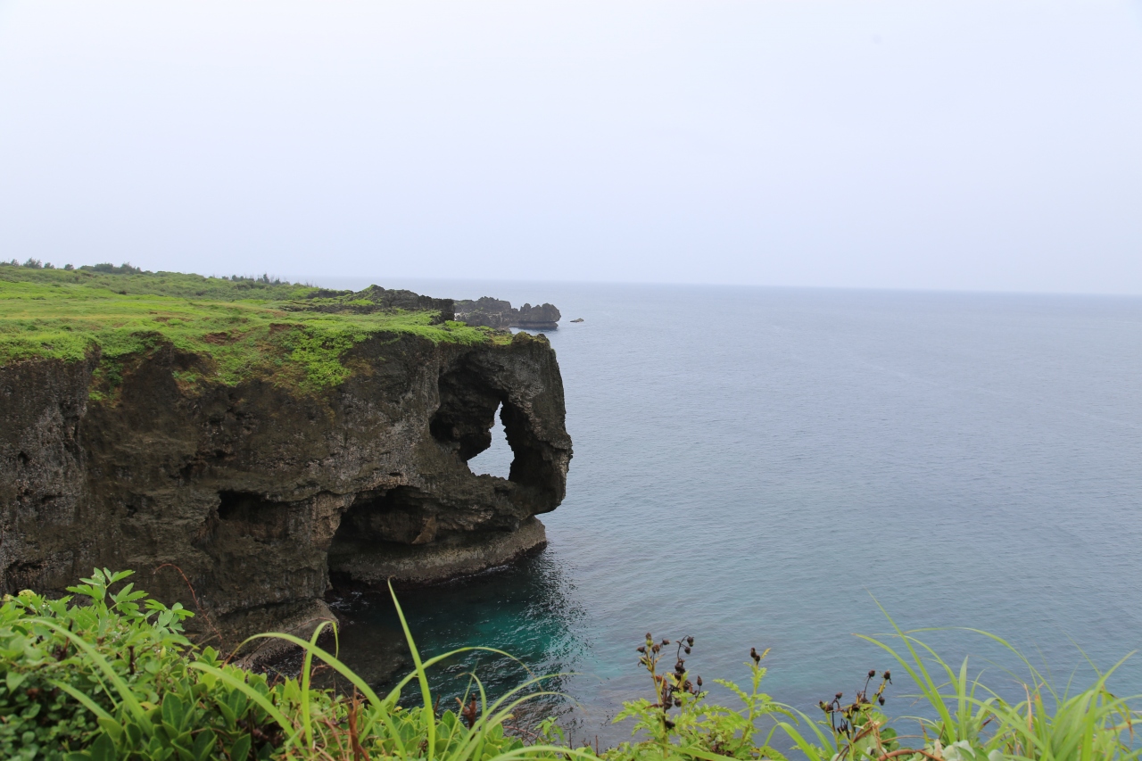 万座毛は崖の先が象の鼻のかたちをした岩が印象的でした。