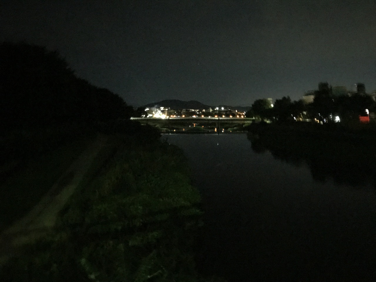京都宿泊で鴨川周辺の散歩の際にはおすすめです。じょうりゅうの賀茂川は道幅が狭いので、注意が必要ですが、鴨川に入ると、川口横でしっかりランニングできます。夜は暗いので、あしもとは注意が必要です。但し、朝や昼間は京都の風情が楽しめるので是非おすすめです