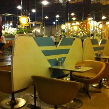 西梅田と北新地駅の間くらいの位置にある、大阪駅前第1ビルB1Fにあります。入口がわかりづらいのですが、モダンなフォントのかんばんが目に入ります。隠れ家的な入口を見つけて入店するとそこは、昔の人が描いたスペースコロニーのような雰囲気の喫茶スペースが現れ別世界にいざなわれたように思えます。小さい頃見た映画のキャバレー的な感じにも見えますが純喫茶です。とても非日常空間を味わえて幸せな時間を過ごせました。