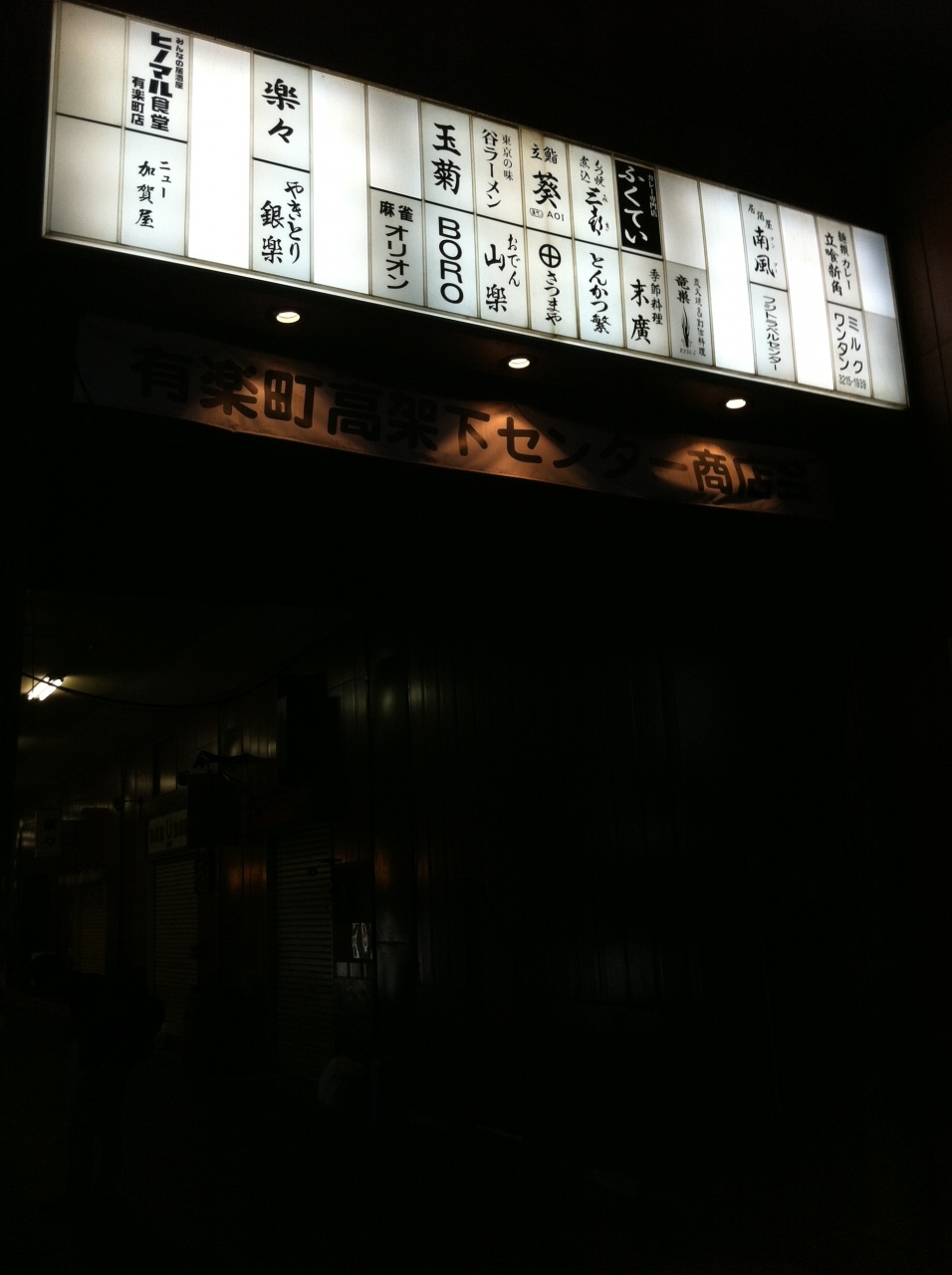 有楽町という東京の中枢に位置する場所に、時代に取り残されたかのような商店街が高架下にある。新宿ゴールデン街や隠れ家的酒場を売りにするエリアもあるが、ここはしっかりと悲壮感のようなものも兼ね備えており、私的にはリアルでとてもよく、このままなんとか生存してもらいたいと思える非日常的空間です。定期的に何か食べに来ようとも思えます。