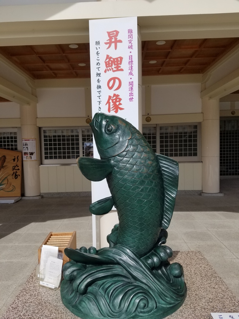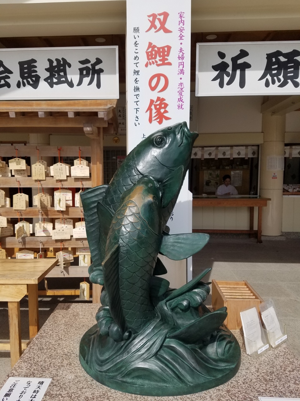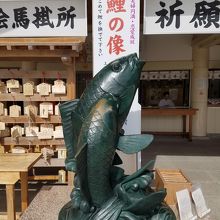 境内には家内安全、夫婦円満、恋愛成就を願う『双鯉の像』難関突破、目標達成、開運出世を願う『昇鯉の像』がありました。どちらも願いを込めて撫でると良いようですよ!