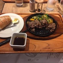ハンバーグについては味はよいですが、焼き方が甘く、砂時計の2分では完全に火は通りませんでした。頼めば焼き直してくれるそうですが、そのまま鉄板の上で時間をおきました。ちょっと脂が多いのが気になります。