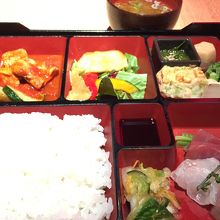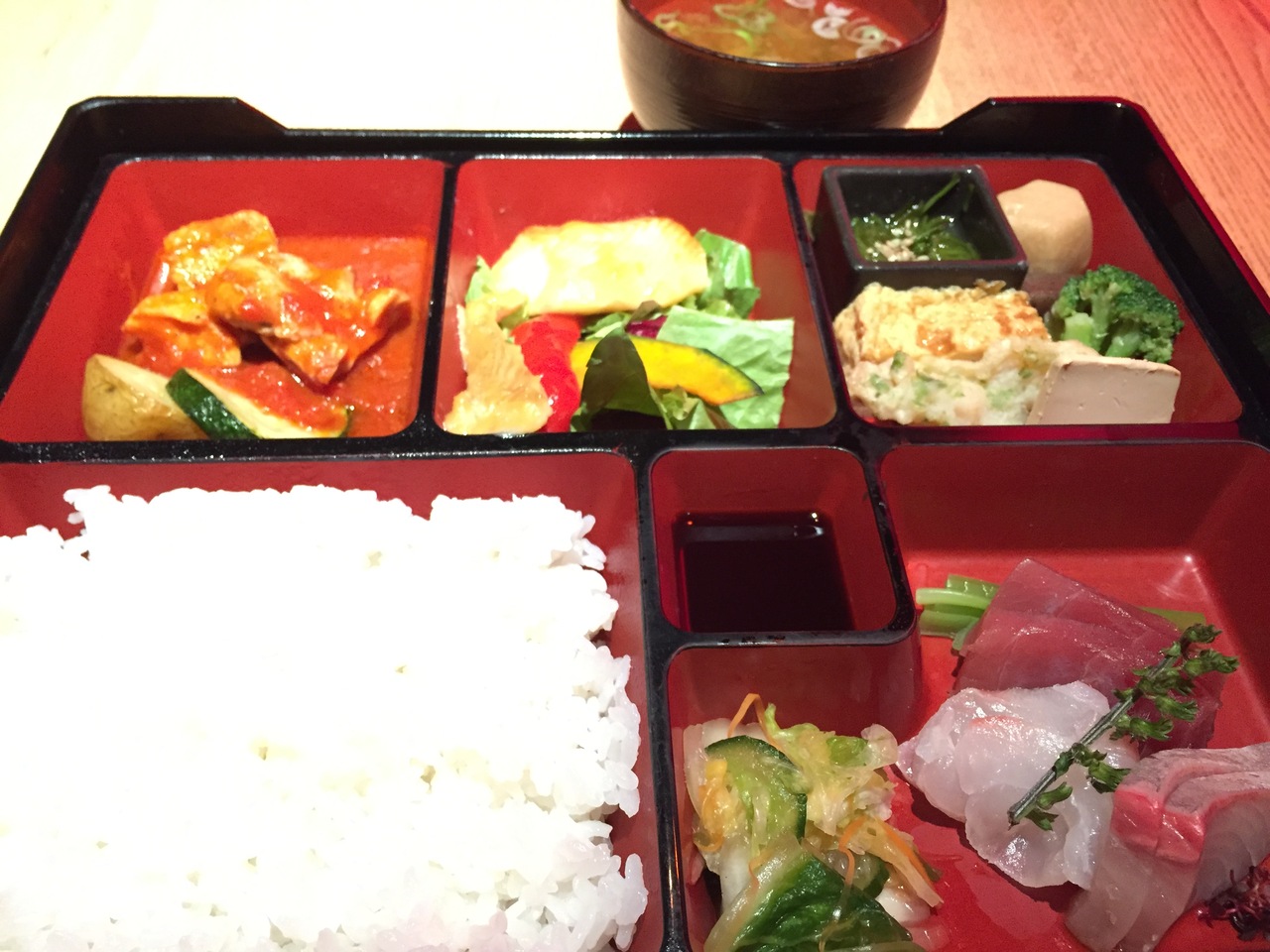 日生劇場の地下にあり 観劇の前のランチに利用しました。お肉もお魚も頂けるから良いかとツギハギ特選弁当(2000円)を注文。弁当とついてるから オシャレな重箱仕様なのかなと勝手に想像してましたが、なんか 違う感じで少しガッカリでした。お友達もガッカリしてました。夜にお邪魔した時はすごく素敵なお皿と盛り付けで良かったのですが・・・。