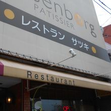 3軒並んでいる亀乃尾本舗、ローゼンボルグ、レストランサツキは、同じ会社の経営。