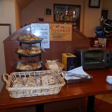 700円以上の料理を注文すると、隣のローゼンビルグで作ったパンが食べ放題になります。パンは食パン、フランスパン、バターロール等シンプルなパンしかないです。もう少し単価の高いものがあると更に嬉しいものです。