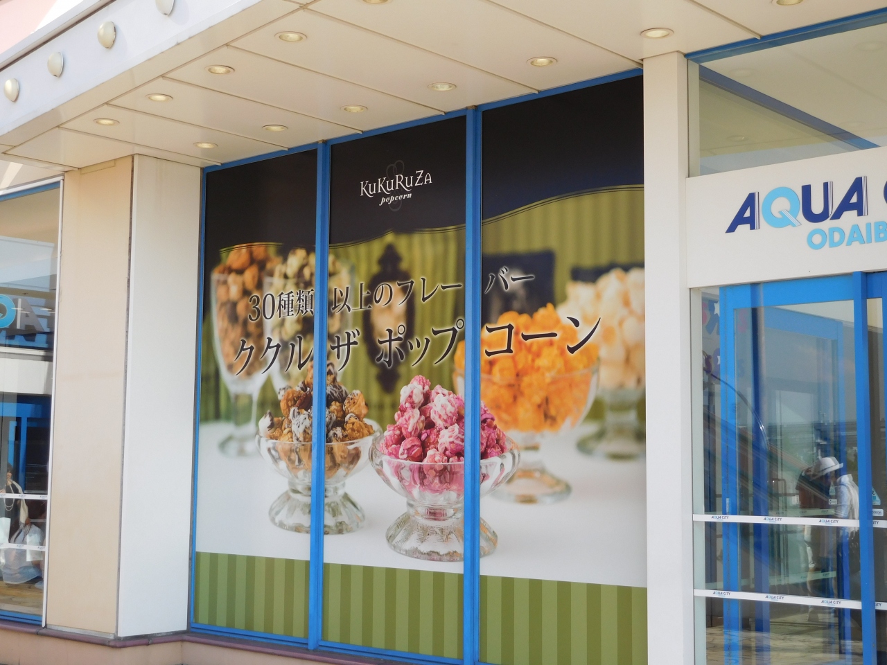 アクアシティお台場の3階、女神のゲートから入ってすぐの場所にある、高級ポップコーンのお店です。10種類のフレーバーがあり、パッケージも、S/M/Lと選べるようになっていました。購入前にいろいろと試食をして選ぶ事が出来て良かったです。