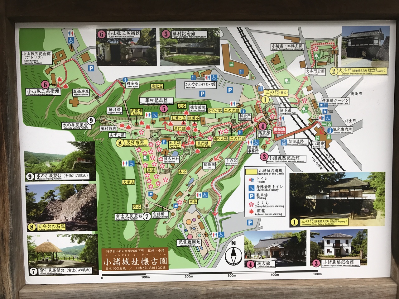 しなの鉄道が小諸城跡城内を分断し、小諸駅を中心にして、駅玄関口に大手門、裏手側に三の門があった。