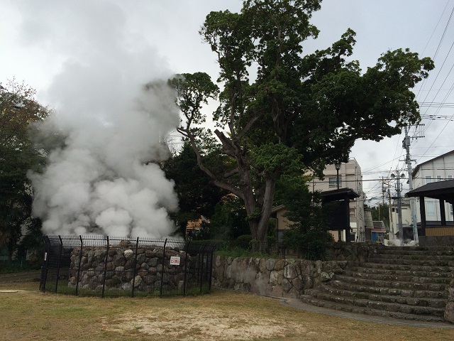 片隅では温泉の蒸気がたくさんでている場所があり温泉街にある雰囲気はありました。