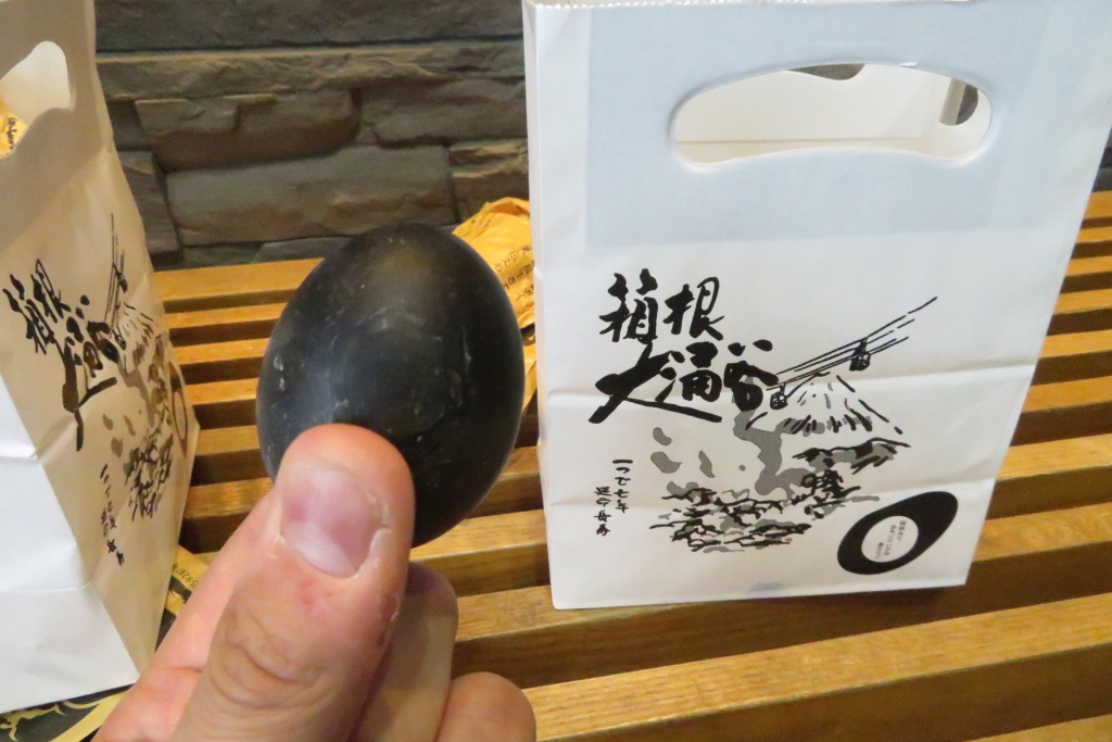 黒たまごを購入して、お店の人からいわれた場所で食べました。普段たまごなんて1日1個程度なのに、あっという間に2個も食べてしまいました。大涌谷マジックおそるべし。