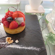 イートインコーナーは、お店の一角にカウンターがあり、そこに5席ほど。ゆっくりとおしゃべりしながら食べるって雰囲気ではないけれども、そこで食べる価値ありです。なぜかというと、ケーキを美しくデコレーションしてくれるから。追加料金はかかりません。お茶は、紅茶かコーヒーしかないけれども、紅茶は何種類かあるし、南部鉄器の鉄瓶に入れてくれるので、+αが嬉しい。