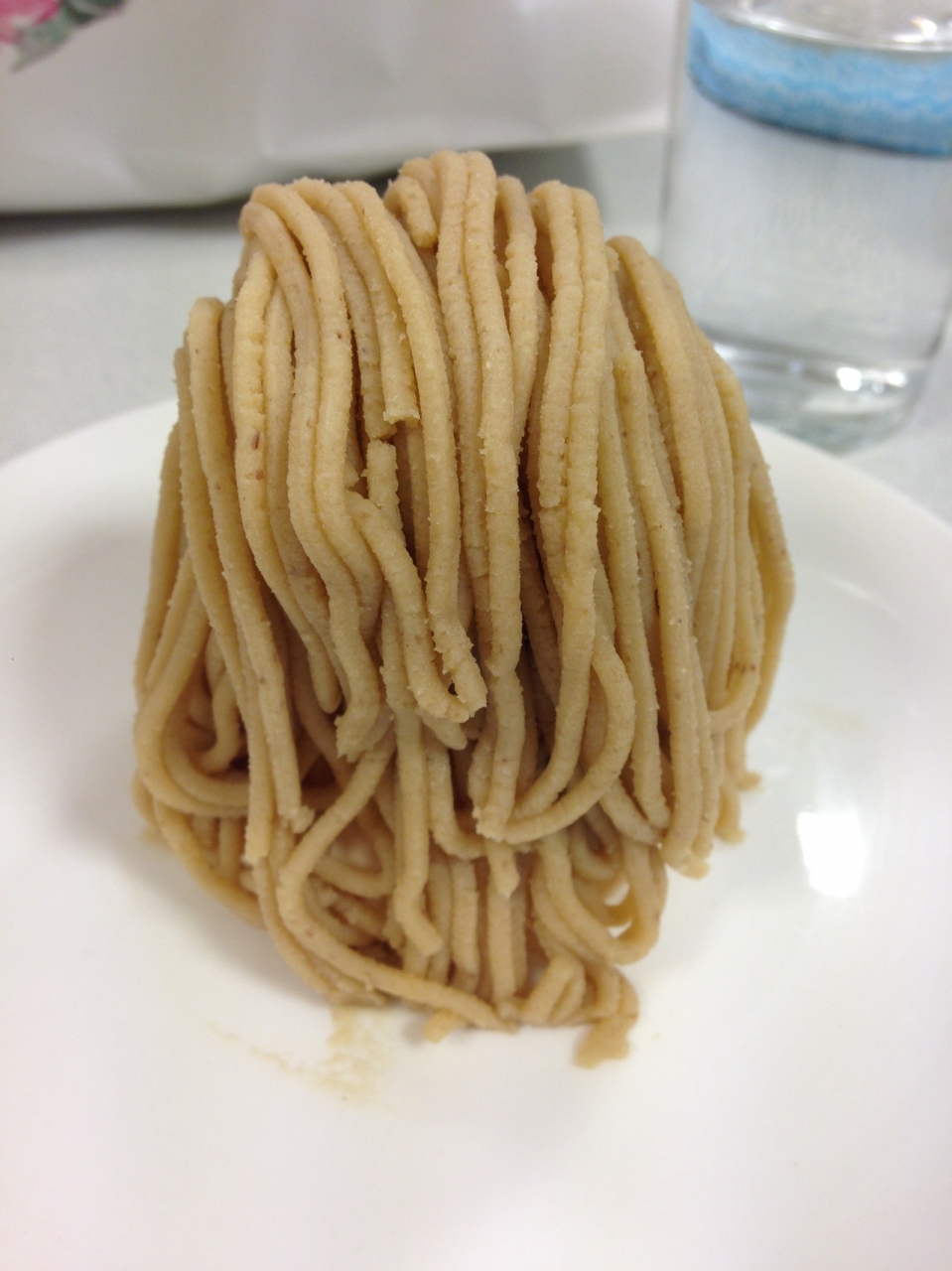 土台にはメレンゲが敷いてあって甘くないクリームの上には、しぼりたての栗のクリームが乗っています。