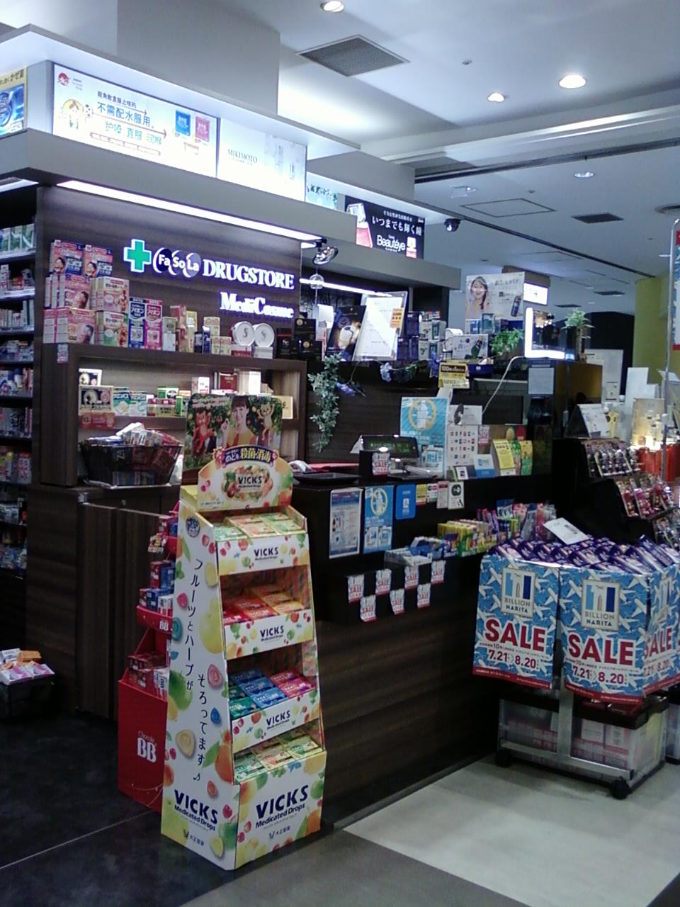 ここのドラッグストアは、成田空港、第にターミナル本館の4階にあります。出発前に忘れがちな旅先での風邪薬や胃腸薬、かゆみ止めや酔い止めなど。ほんの少しでも心配な人は持っていると便利だと思います。忙しい出発前に薬局屋さんにわざわざ出かけるよりも、簡単なものであれば、早めに空港に行ってここで薬を買うのがベストですね。