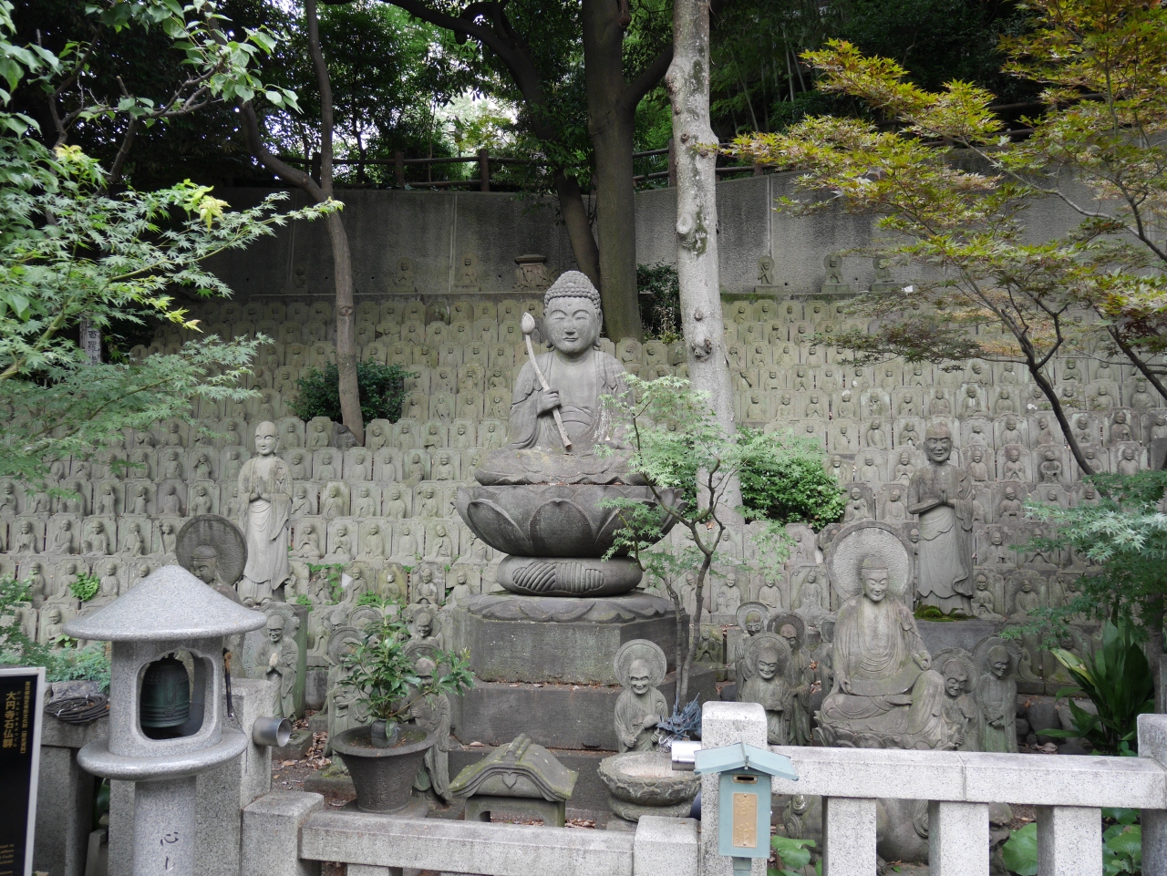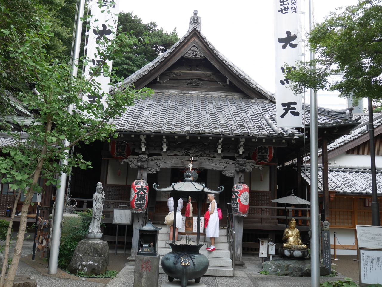 目黒駅から目黒不動尊に参る途中に立ち寄りました。目黒駅から行人坂を下る途中の便利なところにあります。境内はそれほど広くないですが、七福神の一人大黒天を祀り、幟が上がっています。江戸の三大大火の一つ明和大火の火元としても有名で、その供養のために石仏群が安置されたといわれています。