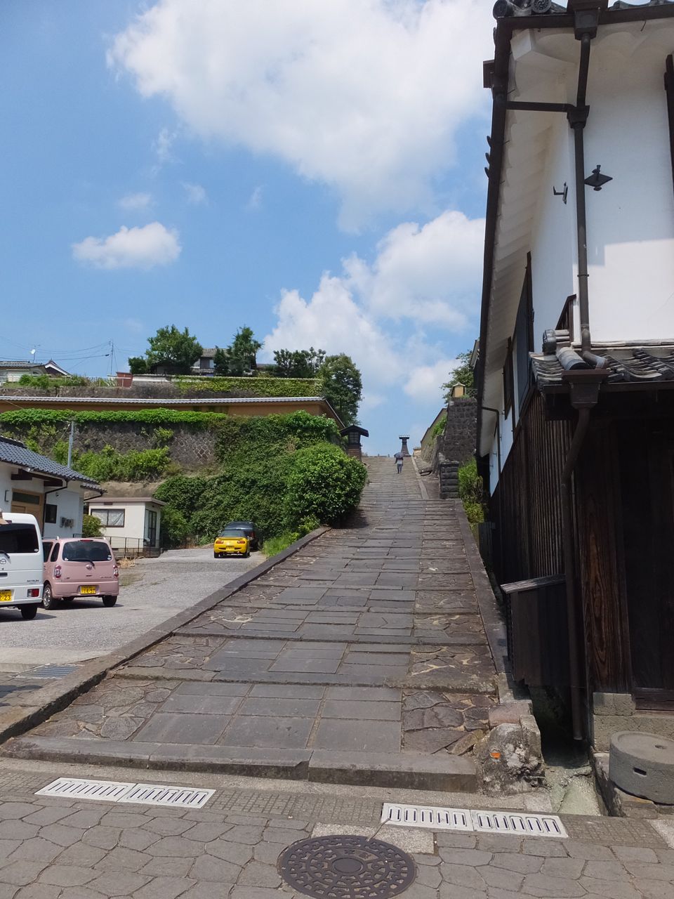 杵築は坂の町ですが、その坂でも一二を争う有名な坂です。志保屋の坂と向かい合わせなので、その展望台としても優れています。武家屋敷のメインの観光場所に近いことからもこの坂が一番訪問しやすいでしょう。
