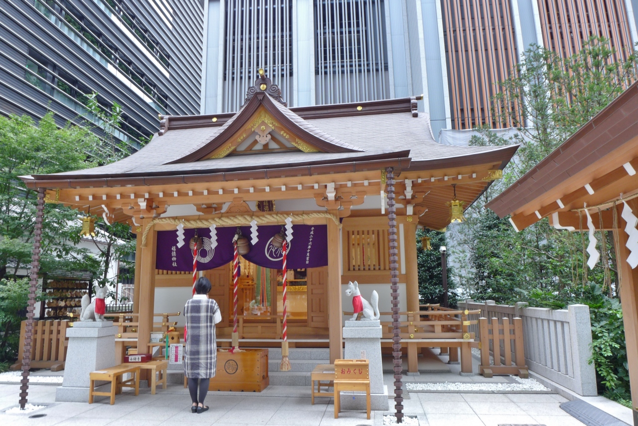 ビルに囲まれたピカピカの稲荷神社ですが、由緒は古くて貞観年間には鎮座していたとか。。