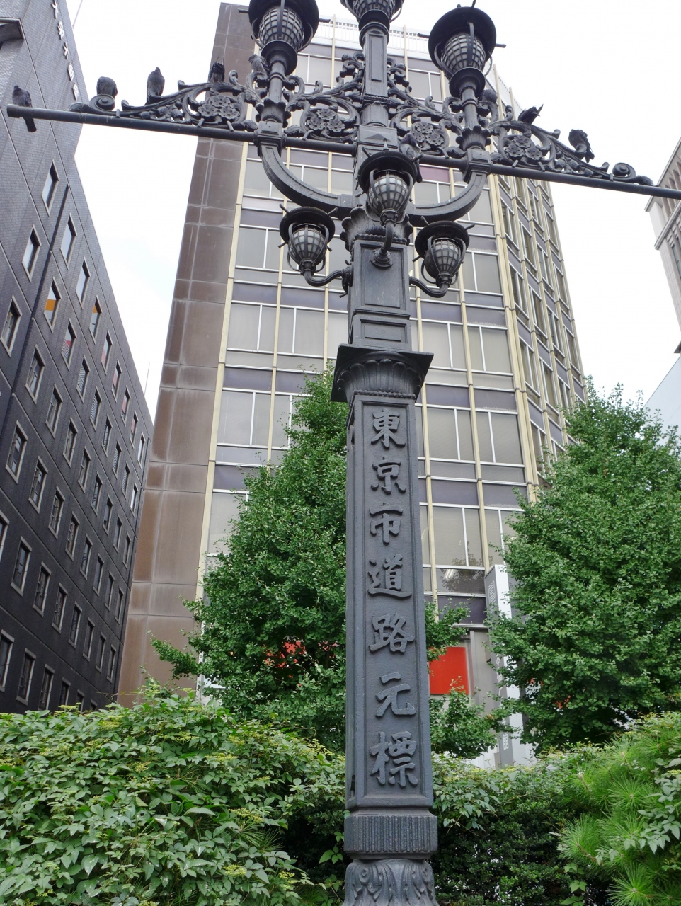 日本橋の北詰にある「元標の広場」に建っていました。明治44年(1911年)に設置されたものだそうで、当時は日本橋の中央に建っていたのだとか。
