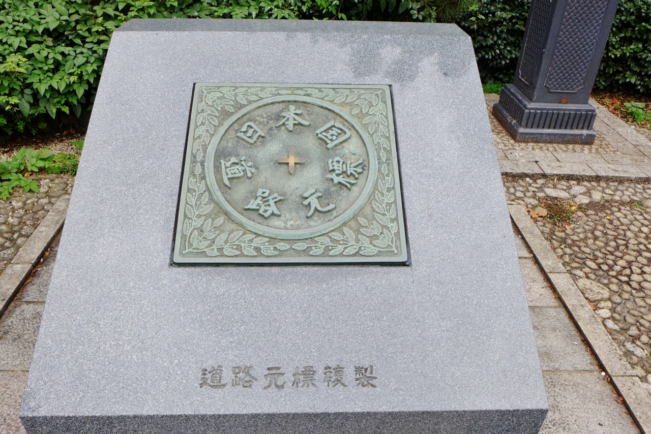 日本の国道の基点は日本橋です。高速道路の上り線で「東京まで〇〇キロ」と表示される東京とはここ日本橋までの距離を指しています。日本橋の中央に埋め込まれているので本物を見るのは危ないです。日本橋の北詰にある「元標の広場」に複製が置かれていました。 一見の価値がありますね。