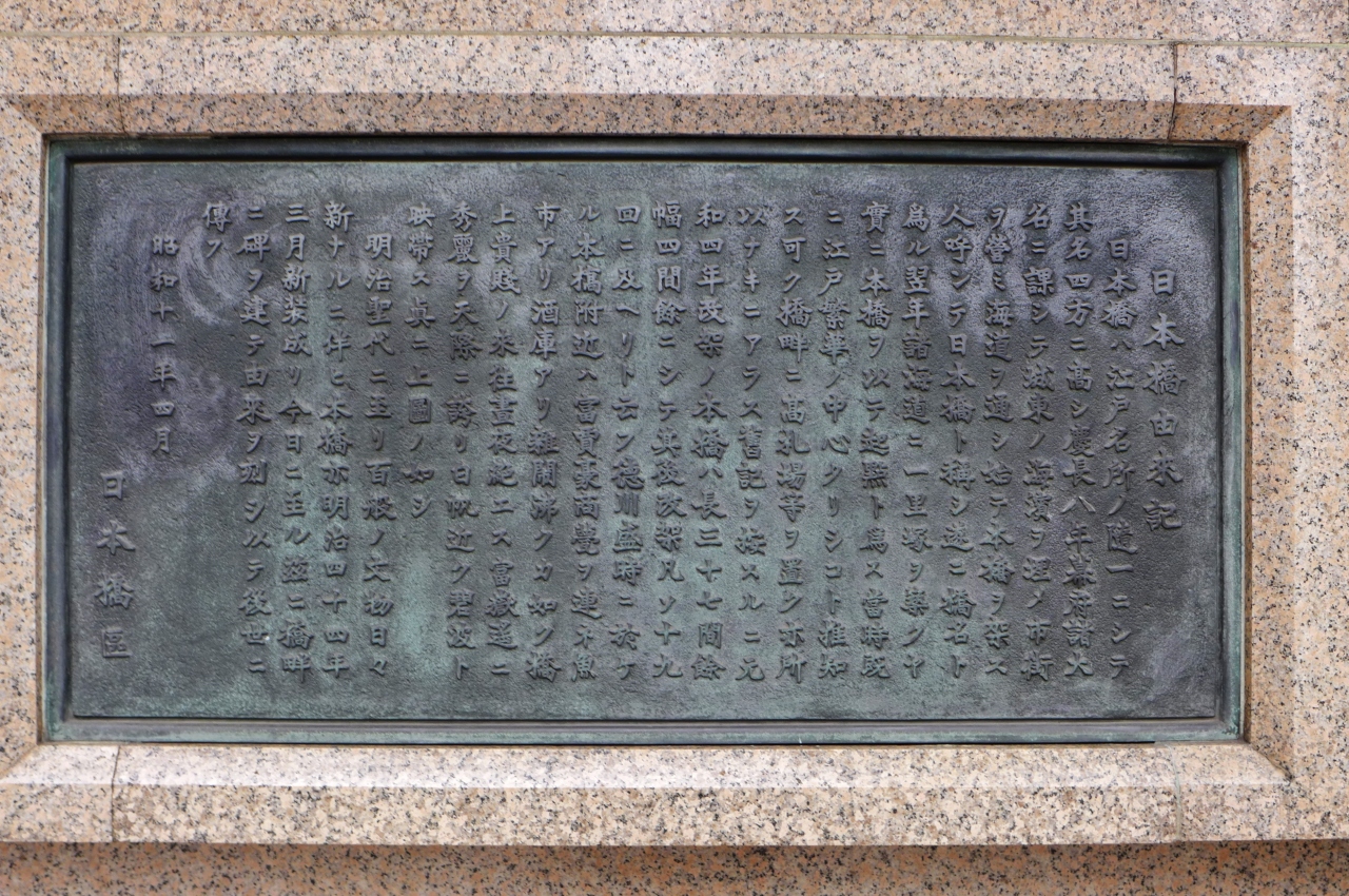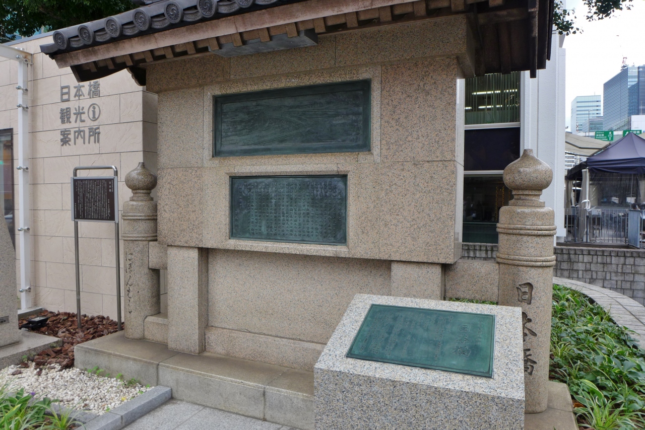 日本橋の南詰め、橋に向かって左手に「日本橋由来記の碑」がありました。