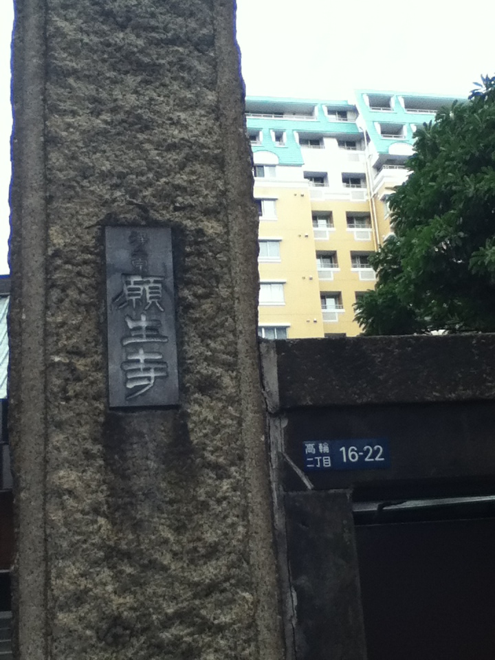 泉岳寺駅の北西、大通りから少し引っ込んだ処にある浄土宗。路地横に石柱の山門があり、その奥に本堂がひっそりと立っている。お勧めの点は、慶長7年(1602)に創建されて以来、多くの人々から敬拝されていること、浄土宗について理解を深められること、境内には江戸時代、門前に重量物の運搬をするための牛屋が建ち並び牛の霊を祀った牛供養塔や、鐘楼、地蔵堂があること、参拝すれば願い事が叶うかもしれないこと、参拝後木々が並ぶ境内を歩いていると心癒されること、駅から徒歩で行けることである。