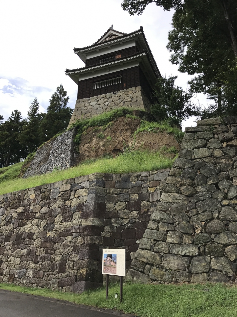 尼ヶ淵の河岸段丘から見上げる南櫓は、東軍をはねつけた難攻不落の城の櫓そのものだ。