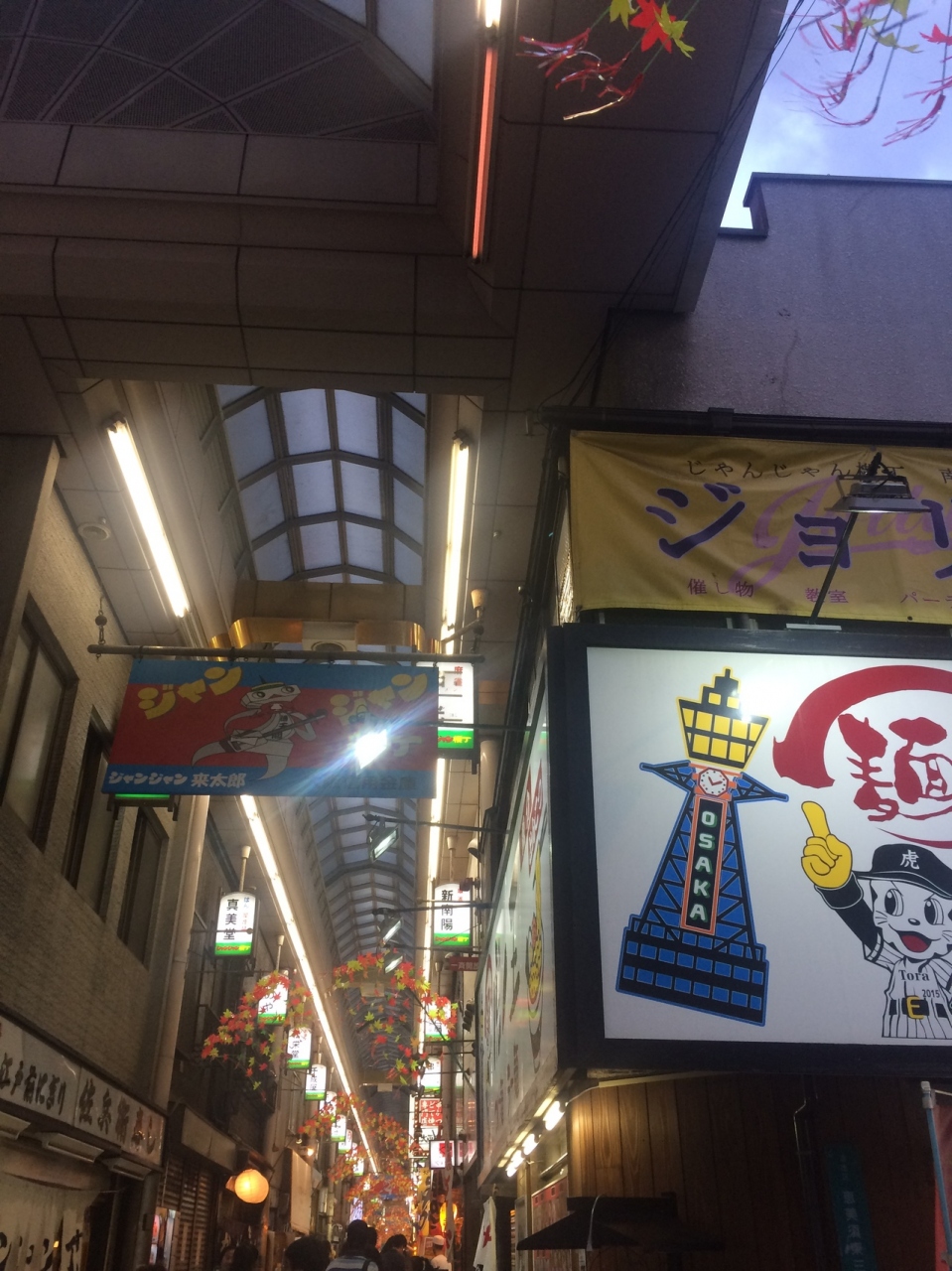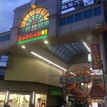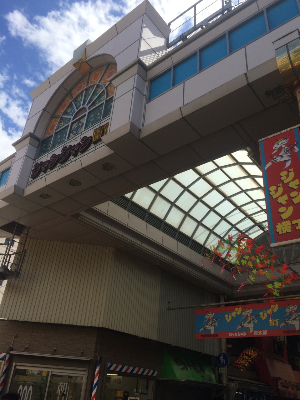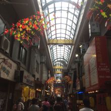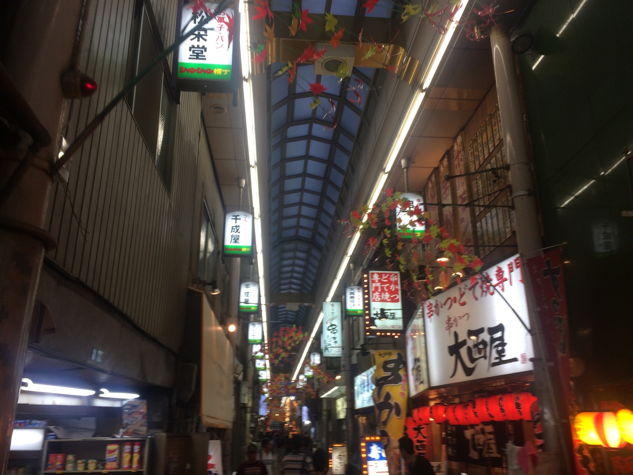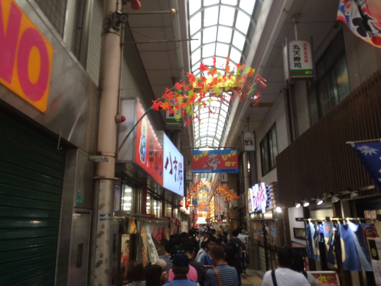 300メートルぐらいあるでしょうか。アーケード沿いの細い通りに店が立ち並び人でごった返ししています。串カツ屋、射的屋、将棋囲碁屋、寿司屋、ゲームセンター等ありどの店も賑わっていました。テーマパークのような通りでした。