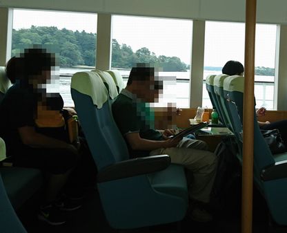 松島島巡り観光船の仁王丸コースに乗船しました。HPの割引券を利用すると少しお安くなります。2階のグリーン席(600円追加)を利用しました。席は3人掛けが左右にあり余裕がありました。また、デッキに出て潮の香りと海風を感じながらの島巡りもよかったです。天気が良かったら更に楽しめたと思います。