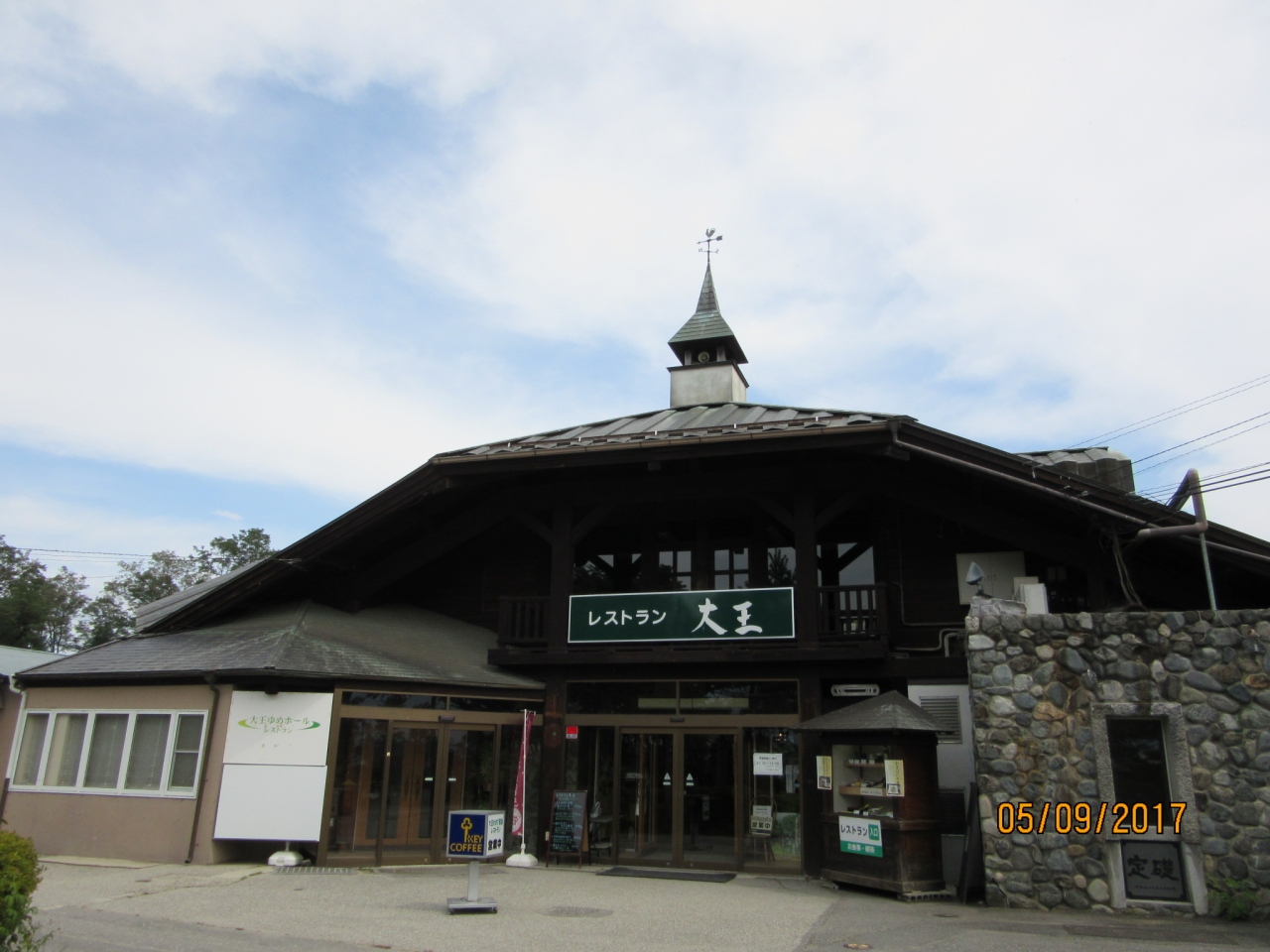大王わさび農場の入り口にある大きなレストラン。わさび農場を見下すカウンターが多数あり豊富なわさびメニューの食事が取れる。わさびカレー920円、わさび丼、わさびパスタなどがあったが、わさびピラフ850円とわさびビール520円を注文した。食券を券売機で購入して呼び出されるのを待つセルフサービススタイルの店。