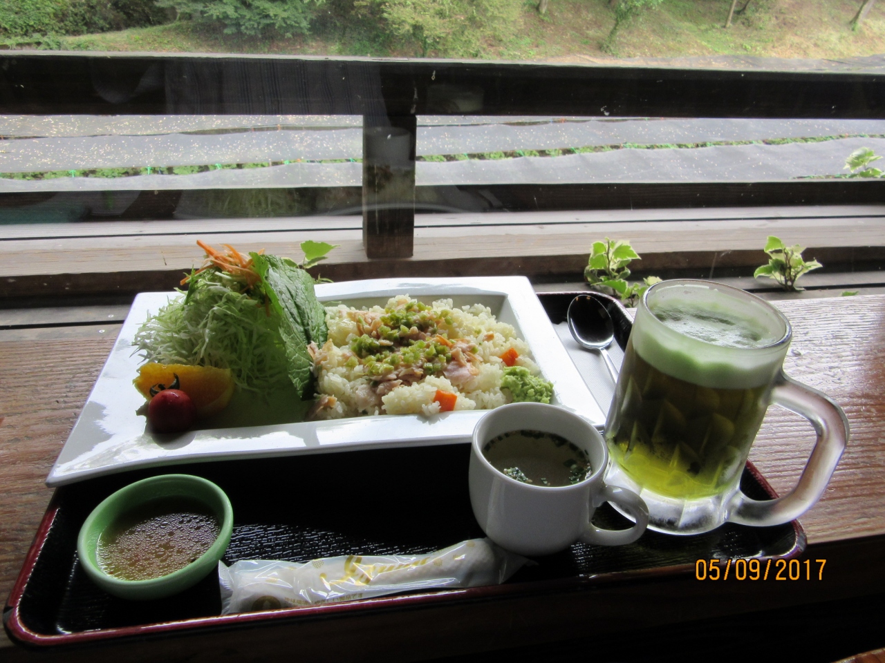 眺望はワサビ田を見下ろしていて素晴らしい。が残念だが料理の味は今一つ、わさびビールは面白いテイストであったが、正直ピラフは水っぽくて美味しくなかった。