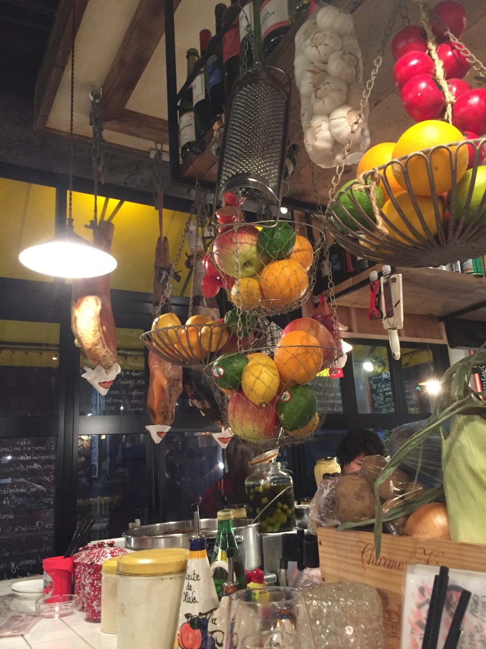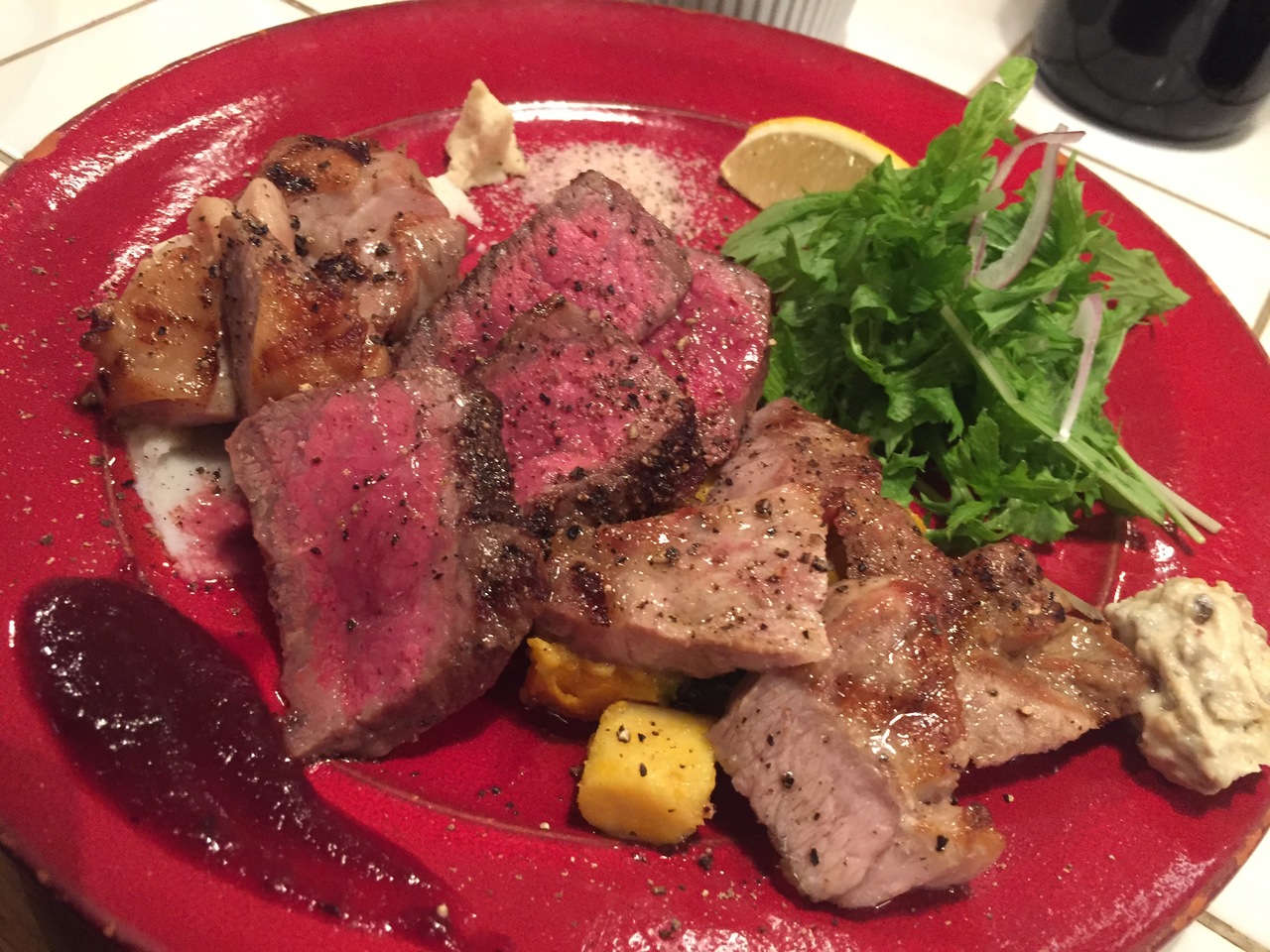佇まいはスペインバルそのもので、ワインなども豊富に揃っています。春菊とイチジクのサラダは珍しく、さらに、肉の盛り合わせなどは特に美味しくいただきました。