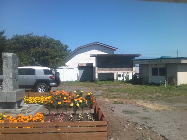 先頃は江差線の廃止が話題になった道南エリアですが、その20年以上前(1988年)に廃止となった松前線の歴史を今に伝える貴重な石碑です。”駅前広場”的な場所もそのまま残されていて、2017年8月現在では、まだかつての観光案内所の小さな建物や、観光案内が描かれていたと思われる巨大な案内板の残骸などが見られ、とても寂しげな風情が漂っていました。ただ、この碑自体は地元の方の思いが強いようで、美しいお花で囲まれていて、ちょっとした墓地訪問のような風情で付近を散策することが出来ました。