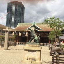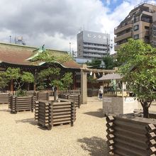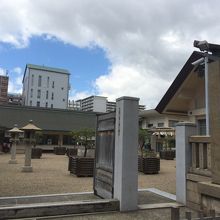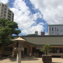 境内の下地の砂利が綺麗でした。本殿手前に木がいくつかあり一本づつ囲いで囲まれていました。授与所では朱印を求めて並んでいる人がいく人かいました。あまり人もいなく穴場の神社です。周りは住宅やビルに囲まれています。