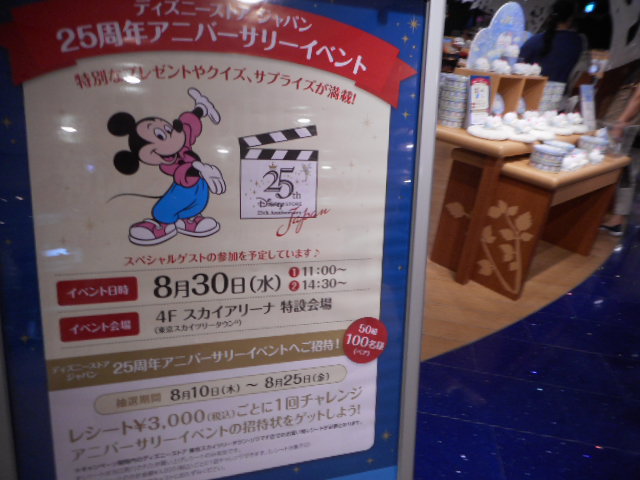 ソラマチの3階にあるショップです。面積はまあまあ、お客さんも多かったです。ディズニーストアは1992年に日本に初出店。今年(2017年)はそれから25周年だそうです。なので、その限定の商品とかイベントとかで盛り上がっていました。