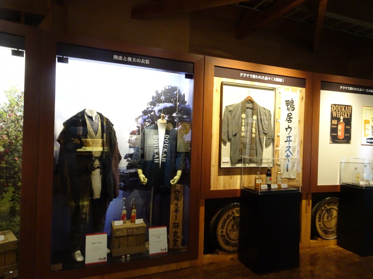 竹鶴政孝氏とその妻リタさんがこの地でウイスキー作りを始めたことが偲ばれ、また、「マッサン」の撮影に使われたグッズなども展示されています。